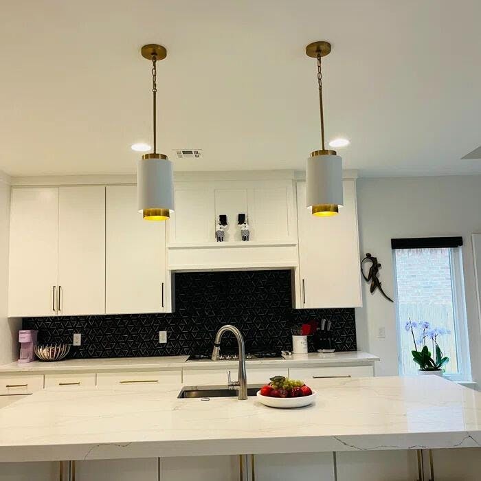 Brighten your space with the fresh, modern look of the Ingrid pendant in matte white and brushed gold. Its layered design features a brushed gold cylinder that casts light from both the top and bottom, surrounded by a crisp white shade for soft, even illumination. Ideal for kitchen islands, dining areas, or entryways, this contemporary fixture blends clean lines with a touch of luxury, offering a stylish solution for today’s interiors.