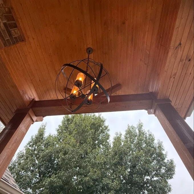 Oh my goodness! This chandelier is absolutely gorgeous! We just renovated our house and bought 2 of these chandeliers for our breezeway. I was hoping that they were not small because I was looking for something large and dramatic. Let me tell you,these did not disappoint! First of all, our electrician said that they were easy to install. Secondly, these are large and grand. What a show piece these are. They look so much better in person. ±I would buy a dozen of these if I knew where I could hang them. So beautiful!! Great purchase! The light bulbs are not included, which is not big deal. Easy to find. (source: Wayfair)